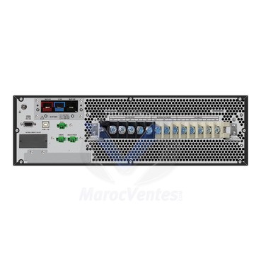 Onduleur Easy UPS On-Liaison, 20 kVA/20 kW Rack 9U, 230 V, sortie 3 Fils (1P+N+E) Qté Limitée Description du ProduitCet onduleur APC monophasé Easy UPS est conçu pour les professionnels de l'informatique ou les administrateurs réseau afin de maintenir la disponibilité et la continuité de l'activité. Cet onduleur de 20 kVA double conversion en ligne monté en rack 9U fournit une alimentation en onde sinusoïdale pure et une autonomie étendue pour prendre en charge l'électronique critique en cas de coupure de courant. Le SRV est fourni avec des entrées 3 fils (1P+N+E) et 5 fils (3P+N+E) à câblage physique et une sortie 3 fils (1P+N+E). L'onduleur On-Line dispose d'un emplacement de carte intelligent pour la carte de gestion réseau en option (AP9544, SRVSMB001, VGL9601l) qui permet la surveillance et la gestion réseau de l'onduleur. L'onduleur peut se connecter à l'informatique d'Ecostruxure ou à des plateformes de gestion centralisée tierces. Les bypass automatique et manuel intégrés fournissent une alimentation continue à la charge, même en cas de défaut ou d'erreur interne détectée dans l'onduleur. L'onduleur et la batterie au plomb-acide intégrée bénéficient d'une garantie de 2 ans. Idéal pour les petits datacenters, les sites de production, les salles informatiques, les périphériques de stockage en réseau, les télécommunications et les systèmes informatiques de santé.Cet onduleur monophasé Easy UPS d'APC est conçu pour les professionnels de l'informatique ou les administrateurs réseau afin de maintenir la disponibilité et la continuité de l'activité. Cet onduleur en rack 9U à double conversion en ligne de 20 kVA fournit une alimentation à onde sinusoïdale pure et une autonomie prolongée pour prendre en charge les composants électroniques critiques en cas de coupure de courant. Le SRV est livré avec des entrées câblées à 3 fils (1P+N+E) et 5 fils (3P+N+E) et une sortie à 3 fils (1P+N+E).Caractéristiques TechniquesPort SmartConnectpuissance nominale en W : 20000 Wtype de batterie : batterie à acide de chargeTension d'entrée principale : 230 VPuissance nominale en VA : 20000VANombre d'unités de rack : 9Utype de connexion de sortie : Câblage fixe 3 fils (1P + N + E) 1Matériel fourni : 1 câble USB1 câble de configuration RS-2323 supports de montage en rack3 pieds de stabilisation/montage mural6 barres de cavalierPack de 2 batteries externes1 câble de batterieManuel d'utilisationComprisCD de documentation, guide d'installation, supports de montage en rack, câble USBCaractéristiquesOnduleur à onde sinusoïdale pure en ligne à double conversion 20 kVA/20 kW, montage en rack 9UEfficacité de fonctionnement élevée en mode ECO à économie d'énergieAjoutez jusqu'à 10 packs de batteries externes (SRV120RLBP2-9A) pour une durée de fonctionnement prolongéeInterface LCD facile à lire pour des informations détaillées et précises sur l'état de l'onduleur.