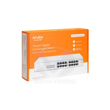 Commutateur Aruba Instant On 1430 16G Non Gérée 16 Ports RJ-45 10/100/1000 Qté Limitée Description du ProduitCommutateur Aruba Instant On 1430 16GLa gamme Aruba Instant On 1430 offre des commutateurs non gérés prêts à l’emploi pour les petites entreprises à la recherche de solutions de connectivités réseau simples, fiables et à faible coût. Ces commutateurs faciles d’utilisation offrent des fonctionnalités Gigabit Ethernet de couche 2 à un prix abordable pour relier et partager des ressources quotidiennes, comme des imprimantes et des points d’accès, sans configuration réseau complexe. Prêts à l’emploi, dotés de fonctions entièrement automatisées, nécessitant aucune maintenance continue et comprenant des modèles PoE (Power over Ethernet), ces commutateurs assurent une connectivité simple et fiable parfaites pour plus petites PME et le télétravail.Série de commutateurs Gigabit Ethernet de couche 2 non gérés, prêts à être déployés pour les modèles à 5, 8, 16, 24 et 26 ports non PoE et PoE.Aucune configuration ni gestion requise.Plug-and-play avec fonctions entièrement automatisées sans aucun entretien.Jusqu’à 124 W de PoE pour prendre en charge les points d’accès, téléphones IP et autres devices IoT.Design sans ventilateur pour un déploiement silencieuxConnectivité Ethernet non gérée pour les petites entreprisesLa série Aruba Instant On 1430 comprend des commutateurs Gigabit Ethernet non géré de couche 2 prêts pour le déploiement dans sept modèles de configurations PoE et non PoE : un (1) modèle à 5 ports, deux (2) à 8 ports, deux (2) à 16 ports, un (1) à 24 ports et un (1) à 26 ports avec deux modèles avec liaisons montantes SFP.Avec les modèles PoE, vous disposez d’une alimentation électrique PoE jusqu’à 30 W par port pour les appareils PoE de Classe 4 tels que les points d’accès, les caméras de surveillance et les téléphones VoIP. Les modèles PoE à 8 et 16 ports sont dotés d’une puissance de 64 W et 124 W respectivement pour prendre en charge les derniers devices IoT.Deux ports fibre 1G SFP dédiés sur le modèle à 26 ports peuvent être utilisés pour des liaisons montantes et prendre en charge la connectivité longue distance via des émetteurs-récepteurs fibre, pour un total de 28 ports Ethernet.La garantie à vie limitée Aruba Instant On inclut le support téléphonique 24h/24, 7j/7 les 90 premiers jours et le support par messagerie instantanée (Chat) sur toute la période de garantie. Le support de la communauté est incluse pendant toute la durée de vie du produit.Prêts à l’emploiLes modèles de la série de commutateurs Aruba Instant On 1430 sont faciles d’utilisation, et ne requièrent aucune configuration ni gestion continue.Les modèles non agérés PoE assurent la prise en charge entièrement automatisée pour l’utilisation de téléphones IP, de caméras de vidéosurveillance ou de points d’accès sans fil compatibles.Aucune configuration n’est requise après l’installation d’émetteurs-récepteurs SFP 1GbE sur le modèle 26 ports pour étendre la connectivité avec la fibre gigabit.Bénéficiez d’une grande flexibilité grâce aux options de montage en rack, mural, sous et sur la table(variable en fonction du modèle).Le câblage simplifié permet d’utiliser indifféremment des câbles droits ou croisés sur tous les ports 10/100/1000 avec Auto MDI/MDI-X.Efficacité énergétique et optimisation du traficLa série de commutateurs Aruba Instant On 1430 dispose du mode EEE (Energy Efficient Ethernet) et est conforme aux exigences de la norme 802.3az afin d’économiser de l’énergie pendant les périodes de faible activité des données.Pour une exécution silencieuse, les modèles ne comportent pas de ventilateur dans les environnements de bureau ou sensibles au bruit. Leur fonctionnement requiert moins d’énergie.La qualité de service permet la hiérarchisation des paquets sensibles au temps (comme la voix sur IP et la vidéo) par rapport au trafic selon la classification DSCP ou IEEE 802.1p.La prise en charge de trames étendues garantit une taille de trame allant jusqu'à 9216 octets pour améliorer les performances des transferts de données volumineux.Le contrôle des flux assure un mécanisme d’accélération des flux propagé via le réseau pour prévenir la perte de paquets au niveau d’un nœud surchargé.Caractéristiques Techniques- Ports 16 ports RJ-45 10/100/1000- Mémoire et processeur EEPROM 128 Kbit/s- Taille du tampon de paquets : 2,0 Mo- Débit 23,80 Mbit/s- Capacité de basculement 32 Gbit/s- Possibilité PoE -- Fonctions d'administration Non géré- Nom du module d'alimentation Adaptateur secteur externe- Tension d'entrée 100-127 VCA / 200-240 VCA, selon le modèle- Consommation électrique Maximum : 7,9 W- Inactif : 2,3 W- Dimensions du produit (mesure métrique) 25,8 x 27,5 x 4,4 cm- Poids 1,72 kg