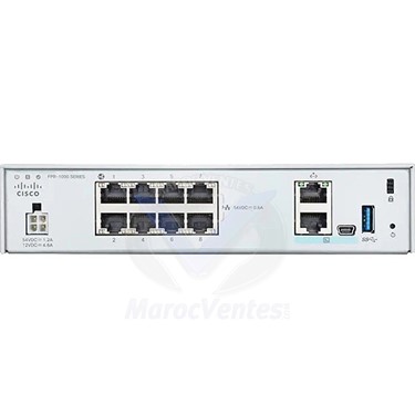 Produit Cisco Firepower 1010 – FPR1010-ASA-K9Caractéristiques La gamme Cisco Firepower 1000 est une famille de quatre plates-formes de sécurité pare-feu nouvelle génération (NGFW) axées sur les menaces qui offrent une résilience commerciale grâce à une défense supérieure contre les menaces. Il offre des performances durables exceptionnelles lorsque les fonctions avancées de menace sont activées. La gamme de débits de la série 1000 s’adresse aux cas d’utilisation du petit bureau, du bureau à domicile, de la succursale distante à la périphérie Internet. Les plates-formes de la série 1000 exécutent Cisco Firepower Threat Defense (FTD) et Cisco Adaptive Security Appliance (ASA).Performances – Débit du pare-feu (UDP): 2 Gbps– Débit de pare-feu multiprotocole: 1.4 Gbps– Débit VPN IPsec (test 450B UDP L2L): 500 MbpsCapacité – Connexions simultanées: 100000– Nouvelles connexions par seconde: 25000– Homologues VPN: 75Ports – 8 x 1000Base-T – RJ-45– 1 x 1000Base-T (gestion)– 1 x serial – RJ-45– 1 x USB 3.0 – Type ADisque dur 1 x 200 GoOS Cisco ASA 9.13.1Normes de conformité CISPR 22 classe A, CISPR 24, EN 61000-3-2, EN 61000-3-3, EN55024, AS/NZS 60950-1, EN 61000-4-4, EN 61000-4-2, EN 61000-4-3, EN 61000-4-6, ICES-003 classe A, EN 61000-4-5, EN 61000-4-11, EN 61000-4-8, UL 60950-1, IEC 60950-1, EN 60950-1, GB 4943, Directive 2004/108/EC, VCCI Class A, KN24, KN22 Class A, EN 55022 Class A, FCC CFR47 Part 15 A, CNS 13438 Class A, EN 300 386, TVCN 7317, Directive 2006/108/EC, TCVN 7189, CAN/CSA-C22.2 No. 60950-1, AS/NZS CISPR22 Class AType de chassis Montable en rack – 1U - Plus d'images (1)