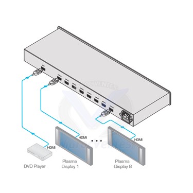 Le VM−8H est un distributeur amplificateur pour signaux HDMI. Il régénère et égalise le signal et le distribue vers 8 sorties identiques.Débit de données maximum — 6,75 Gbit/s.Compatible HDTV.Compatible HDCP.Prise en charge HDMI — Deep Color, xvColor™, Lip Sync, CEC.Passage 3DI–EDIDPro™ Kramer Intelligent EDID Processing™ — Le produit est capable de lire, sauvegarder et restituer les informations EDID de chacune des entrées pour les présenter à la source afin d'assurer la diffusion dans le bon format. Il est également capable de générer un EDID par défaut.Technologie Kramer Equalization & re–Klocking™ — Régénère le signal numérique pour parcourir une plus longue distance.Indicateur LED de sortie active.Alimentation universelle — 100-240 V CA.Dimensions Baie 19 Pouces Normalisée. — Hauteur 1U, équerres de montage comprend.Caractéristiques Techniques