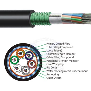 Câble fibre optique 6-12 brins Multimode OM3 ARMÉ peut être utilisé pour les applications LAN et WAN. Le câble convient aux applications intérieures sur des plateaux et à l'extérieur dans les conduits.Câble fibre optique multimode 6-12 brins avec armature acier corrugué et gaine PEHD pour l’extérieur Outer JacketCâble fibre monomode sous tube,non métallique, résistant aux rongeurs.