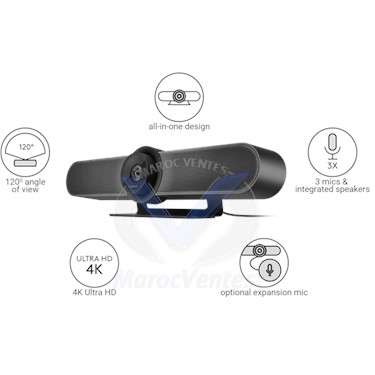 Logitech MeetUp fournit une qualité vidéo supérieure pour les petites salles de conférence. Son champ de vision à 120 degrés s'adapte en toute simplicité aux petites salles de conférence où les participants prennent place de part et d'autre de la caméra. Le capteur ultra HD 4K et l'objectif Logitech apportent une clarté exceptionnelle tandis que le panoramique, l'inclinaison et le zoom vous permettent de vous concentrer sur les conférenciers et leurs supports visuels.