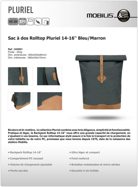 Sac à Dos Pluriel Backpack Rolltop 14-16" Blue/Brown pour Ordinateur Portable