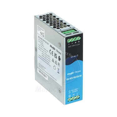 Alimentation industrielle Reyee 54 V 2,2 A 120 W (RG-NIS-PA120-54)- Sortie 54 V CC – Fournit une tension stable de 54 V CC à 2,2 A pour un fonctionnement fiable de l'appareil- Capacité de puissance de 120 W – Prend en charge jusqu'à 120 W de puissance continue- Entrée CA/CC universelle – Accepte 100-240 V CA ou 120-370 V CC pour un déploiement flexible- Montage sur rail DIN – Conçu pour une installation facile sur des rails DIN standard dans des panneaux industriels- Fonctions de protection – Inclut une protection contre les surintensités, les surtensions et les courts-circuits pour un fonctionnement sûr- Haute efficacité – Atteint jusqu'à environ 90 % d'efficacité pour minimiser la production de chaleur et le gaspillage d'énergie- Large plage de températures de fonctionnement – Fonctionne de manière fiable de –20 °C à 60 °C pour les environnements difficiles- Certifications industrielles – CE, RoHS et UL conforme pour une sécurité et une qualité garanties.Caractéristique Techniques