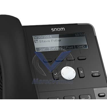 Pas besoin de bloc secteur, le Snom D715 puise son alimentation directement sur le prise Ethernet ! Grâce à ses 2 ports Ethernet gigabit, vous transférez vos données à une vitesse de 100 Mbs sans ralentissement.Le Snom D715 est équipé d'un support résistant qui permet de l'installer en position semi-verticale (55°), horizontale (33°) ou directement au mur.Le Snom D715 vous offre 5 touches programmables dotées de LED. Chaque touche peut facilement être configurée pour supporter des fonctions diverses telles que sélection rapide, signalisation du statut des utilisateurs (BLF) ou gestion de postes internes multiples.Mises à jour automatiques de tous vos postes