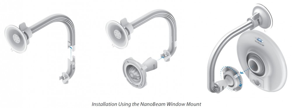 Le modèle NBE-19-WM, dédié aux produits de la gamme NanoBeam, est conçu pour permettre une installation sûre des solutions NBE-M2-13, NBE-M5-19 et NBE-5AC-19 sur les fenêtres.