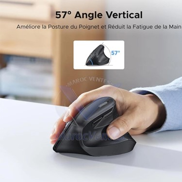 CONFORT EXCEPTIONNEL La conception ergonomique de cette souris verticale assure un angle naturel de 57° entre votre bras et votre poignet, prévenant ainsi la fatigue. C'est pourquoi elle est idéale pour les internautes et les utilisateurs d'ordinateurs travaillant de longues heures.CONTRÔLE PRÉCIS Cette souris sans fil 2,4 GHz dispose de 4 niveaux de DPI (1000/1600/2000/4000). Vous pouvez choisir le DPI adapté à votre utilisation ou à la résolution de votre écran pour un contrôle optimal.LIBERTÉ SANS FIL La souris verticale UGREEN offre une portée maximale de 10 m, vous libérant ainsi des contraintes des câbles.Large compatibilité : via la bande 2,4 GHz, vous pouvez vous connecter aux appareils Windows (7/8.1/10/11), macOS (10.15 et versions ultérieures), iOS (13.4 et versions ultérieures), iPadOS (14.0 et versions ultérieures), Android (5.0 et versions ultérieures), Chrome OS ou Linux.Conçu pour le confort : ce produit mesure 119,8 x 85,8 x 73 mm (longueur x largeur x hauteur) et pèse 105 g, idéal pour les grandes mains de 17 cm et plus.Remarque : En mode Mac, le bouton latéral avant permet de passer à l’application suivante (Commande + ]) et le bouton latéral arrière permet de revenir à l’application précédente (Commande + [).Adoptez une nouvelle posture de travail et libérez-vous des douleurs au poignet. La souris sans fil Ugreen Vertical M571 Ergonomique 2.4GHz est conçue pour offrir un confort optimal grâce à son angle naturel de 57°, réduisant la fatigue lors d’une utilisation prolongée. Idéale pour le bureau ou le télétravail, elle propose 4 niveaux de DPI réglables jusqu’à 4000 DPI pour un contrôle précis et fluide. Sa connexion sans fil 2.4GHz assure une portée stable jusqu’à 10 mètres, compatible Windows, macOS, Android et plus. Performante, ergonomique et pensée pour les grandes mains, elle améliore votre productivité avec efficacité et libertéCaractéristiques Techniques