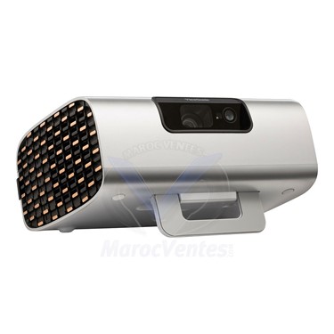 Doté d'un capteur G intégré qui éclaire automatiquement l'arrière de la télécommande lorsqu'elle est soulevée, vous n'aurez plus jamais de difficulté à trouver le bon bouton de commande dans l'obscurité. Sa connectivité Bluetooth offre la flexibilité et la commodité que tout le monde a toujours souhaitée : plus besoin de pointer la télécommande directement vers le récepteur.- Vidéoprojecteur RGB Laser- Compatibilité HDTV: 480i, 480p, 576i, 576p, 720p, 1080i, 1080p, 1440p, 4K UHD- Source lumineuse : jusqu'à 30 000 heures d'utilisation- Luminosité de 2200 Lumens- Contraste dynamique de 3.500.000:1- Objectif : F=2.1, f=6.2451mm- Taille de l'image: 40"-180"- Distance de Projection : 1.06m-4.78m- Installation pratique : Keystone: H:+/-40° , V: +/-40° ; ajustement des coins- Input lag : 176 ms- Haut-parleur Harman Kardon intégré (7W Cube) pour une expérience audio exceptionnelle- Capacités intelligentes : mise en miroir d'écran Wi-Fi, streaming USB-C et connectivité Bluetooth- Connectiques : 1x HDMI 2.0/ HDCP 2.2, USB Type C (Video/5V/2A), USB 2.0 Type A, Bluetooth 4.2, Wi-Fi (5G)- Dimensions (L x P x H) avec pied de réglage : 202 x 165 x 92 mm- Poids : 1.36 KgSPECIFICATIONS