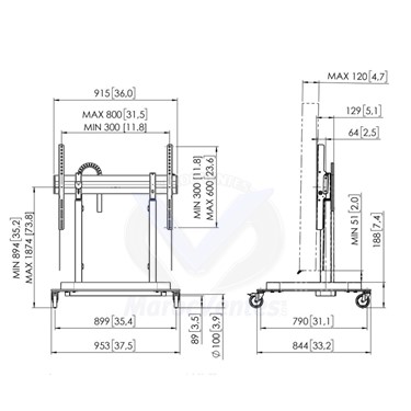 Caractéristiques TechniquesSérie de produits AUGMENTERCatégorie de produit Chariot élévateur motoriséGarantie 5 annéesCouleur NoirAdapté au type d'écran Écran LCDMotorisé OuiDistance minimale au sol - centre de l'affichage (mm) 894Distance max. au sol - centre de l'écran (mm) 1874Réglage de la hauteur (mm) 980Poids max. de charge (kg) 120Taille max. de l'écran (pouces) 98Taille minimale de l'écran (pouces) 55Schéma de perçage (VESA)300 mm x 300 mm, 400 mm x 200 mm, 400 mm x 300 mm, 400 mm x 400 mm, 400 mm x 600 mm, 500 mm x 200 mm, 500 mm x 300 mm, 500 mm x 400 mm, 600 mm x 200 mm, 600 mm x 300 mm, 600 mm x 400 mm, 600 mm x 600 mm, 700 mm x 400 mm, 700 mm x 450 mm, 800 mm x 400 mm, 800 mm x 450 mm, 800 mm x 500 mm, 800 mm x 600 mm. - Plus d'images (6)
