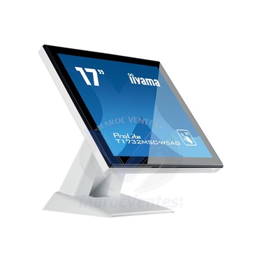 GÉNÉRALType d'affichage Écran LCD à rétroéclairage LED / matrice active TFT Classe énergétique Classe B Consommation d'énergie annuelle 27 kWh Consommation électrique en mode marche 19 Watt Taille de la diagonale 17" Type de panneau TN Facteur de forme 5:4 Résolution native 1280 x 1024 Densité par pixel 0.264 mm Luminosité 250 cd/m² Luminosité avec écran tactile 215 cd/m² Rapport de contraste 1000:1 Prise en charge des couleurs 16,7 millions de couleurs Temps de réponse 5 ms Fréquence de réactualisation verticale 50 - 75 Hz Fréquence de réactualisation horizontale 31 - 80 KHz Angle de visualisation horizontale +85 / -85 Angle de visualisation verticale +80 / -80 Revêtement de l'écran Anti-éblouissement Technologie de rétroéclairage Rétroéclairage par LED Langages OSD Anglais, allemand, français, italien, espagnol, japonais, chinois Fonctions Capot de gestion des câbles, HDCP, verre bord-à-bord, verrouillage OSD, résistant aux rayures, Advanced Frame Rate Control (AFRC), mode d'utilisation avec des gants Couleur Blanc mat Dimensions (LxPxH) 38.7 cm x 20.2 cm x 34.2 cm - avec support Poids 5.6 kg AUDIOType Haut-parleurs - stéreo Puissance de sortie/canal 1 Watt ENTRÉEType Écran tactile - écran tactile Technologie de détection de mouvements Capacitif projeté CONNECTIVITÉInterfaces VGA