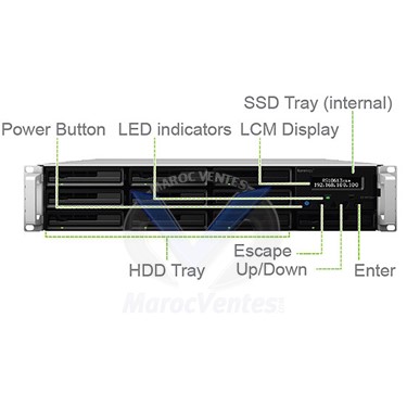 Baie(s) de disque dur 10Max. baies de disque dur avec l'unité d'expansion 106Type de lecteur compatible3.5" SATA(III) / SATA(II) HDD2.5" SATA(III) / SATA(II) HDD2.5" SATA(III) / SATA(II) SSDDisque dur SAS 3,5"Disque dur SAS 2,5"SSD SAS 2,5"Baies de cache SSD dédiées 2Maximum Internal Raw Capacity 60 TB (6 TB HDD X 10) (La capacité peut varier en fonction du type de RAID) (Voir tous les disques durs pris en charge)Disque remplaçable à chaudPorts externesPort USB 2.0 4Port d’expansion 2Système de fichiersDisques durs internes EXT4Disques durs externes