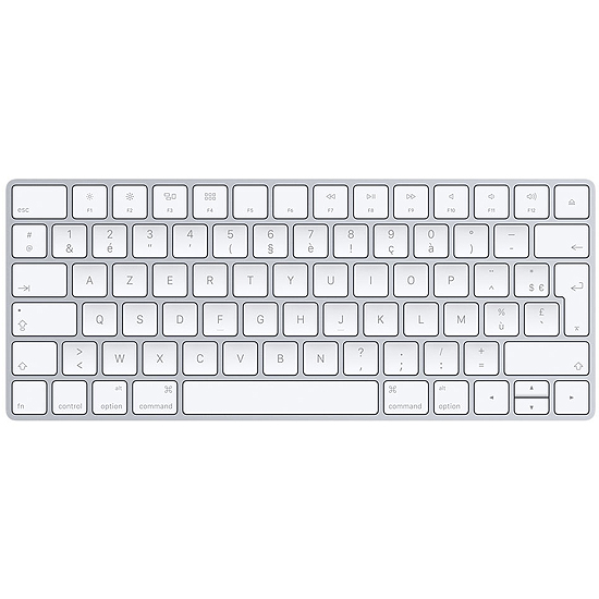 Le Magic Keyboard Apple, c’est un nouveau design épuré, une batterie rechargeable et des touches plus fonctionnelles. Il allie un grand confort d’utilisation à une parfaite précision de la frappe. Son mécanisme à ciseaux sous les touches a été amélioré pour plus de stabilité. Le passage de l’une à l’autre est encore plus fluide, notamment grâce au nouveau profil abaissé du clavier lui-même. Le Magic Keyboard Apple s’associe automatiquement à votre Mac, pour que vous puissiez vous mettre au travail sans attendre. Et comme sa batterie offre une autonomie longue durée, il est opérationnel pendant au moins un mois entre chaque charge.