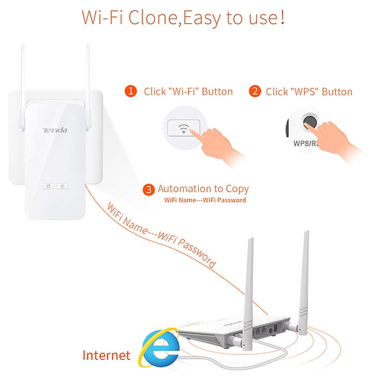 Avec la technologie de clonage Wi-Fi, le clonage Wi-Fi peut être terminé en appuyant simplement sur le bouton "WPS" sur le routeur et sur le bouton "Wi-Fi" sur PA6.