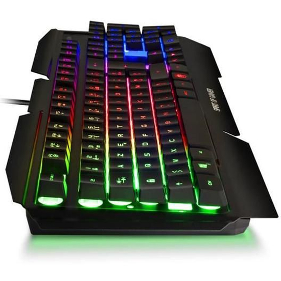 Avec votre clavier Spirit of Gamer Pro-K5, vous avez à votre disposition un périphérique semi-mécanique avec rétro-éclairage multicolore. Idéal pour des parties endiablées, il intègre la technologie anti-ghosting sur 19 touches, un châssis en métal ainsi que 12 raccourcis multimédia. Compatible de Windows XP à Windows 10, le Pro-K5 avec interface USB s'intégrera idéalement sur votre bureau de joueur.