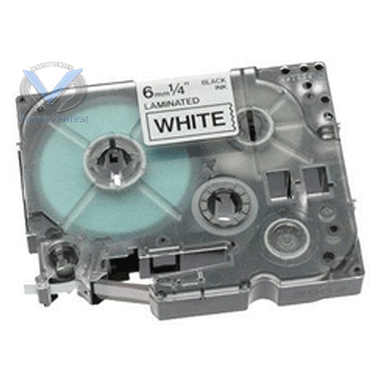 TZE315 - 6 mm blanc sur ruban noir