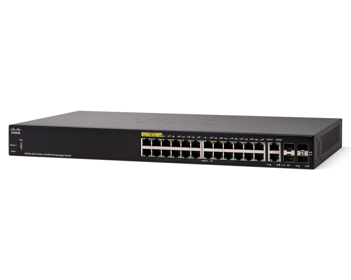Cisco SF350-24P-K9-EU - Switch 24 x 10/100 (PoE+) + 2 x combo Gigabit Ethernet / SFP Gigabit + 2 x Gigabit SFP