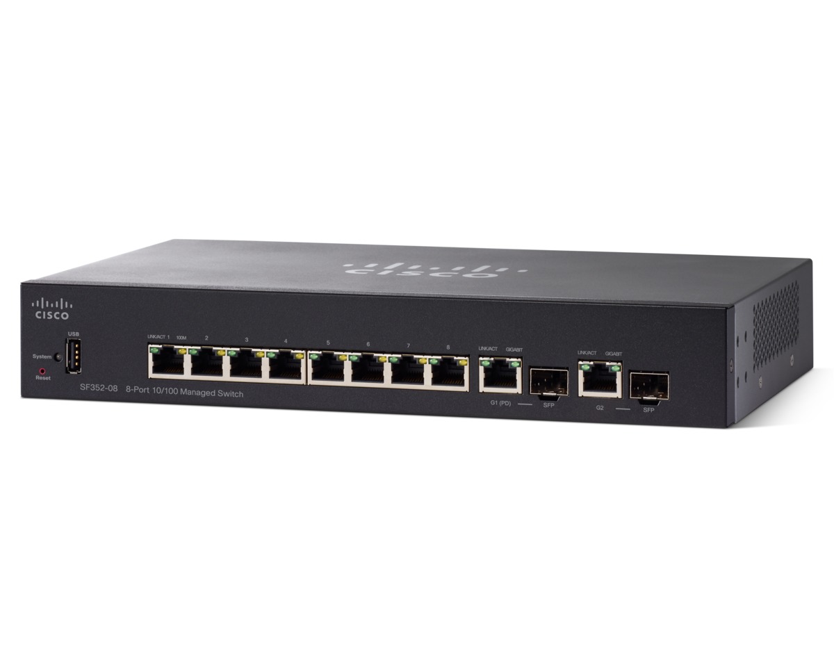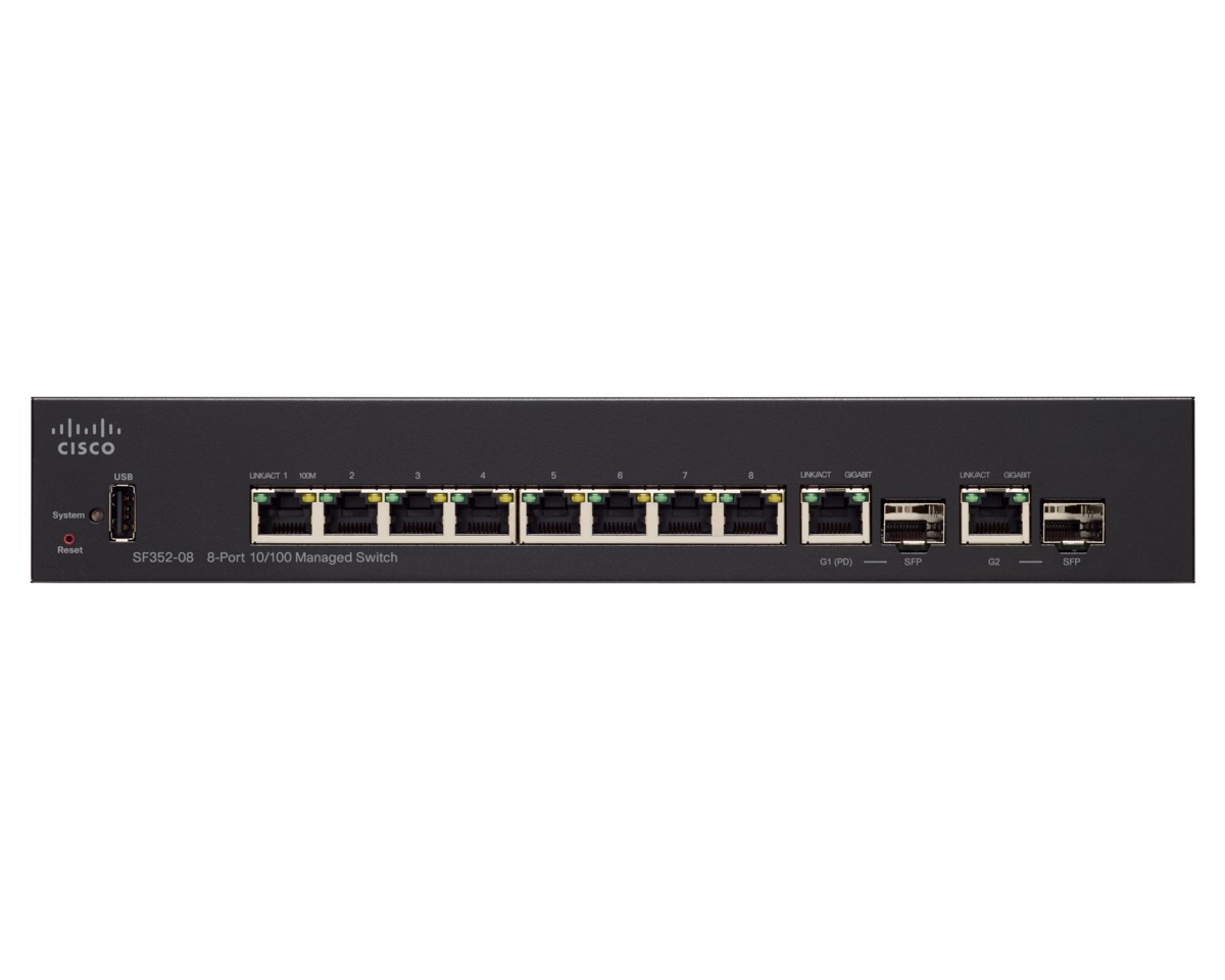 Cisco SF352-08-K9-UK - Switch 8 Ports + 2 x combo Gigabit Ethernet / Gigabit SFP
