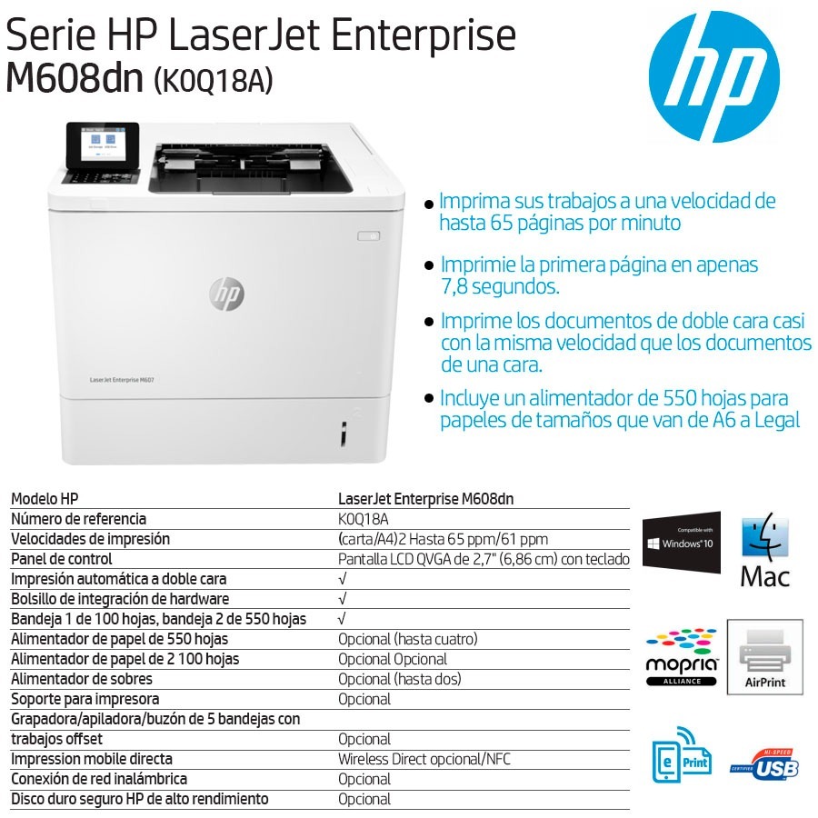 HP K0Q18A - Imprimante laser monochrome LaserJet Enterprise M608dn 1200 x 1200 dpi