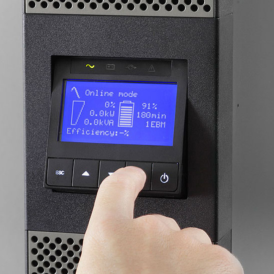 L’écran LCD graphique unique affiche clairement l’état de l’onduleur et les données d’alimentation.