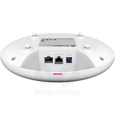 Normes Wi-Fi 802.11a/b/g/n/ac/ax/be (Wi-Fi 7)Bande passante 2.4 GHz (2x2), 5 GHz (2x2), 6 GHz (4x4)Débit maximum 13.66 Gbps (0.69 + 1.44 + 11.53 Gbps)Antennes Antennes intelligentes intégréesNombre maximal de SSID 30Nombre maximum de clients 1024Alimentation DC 12V ±10% / PoE (IEEE 802.3at/af)Consommation max 21.1 W (hors USB)Dimensions Φ220 mm x 45 mmTempérature Fonctionnement : –10°C à +50°C / Stockage : –40°C à +70°CPorts 1 x 5GE, 1 x GE, 1 x USBHumidité 5% à 95% (sans condensation)Altitude –60 m à +5000 mCertifications CE, UL, EN, IEEE, WPA2, WPA3, RoHS, WEEE... - Plus d'images (3)