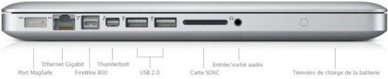 1 x RJ-45Wi-Fi 802.11 a/b/g/n Bluetooth 2.1 + EDR Connectique vidéo Sortie Mini DisplayPort native via le port Thunderbolt