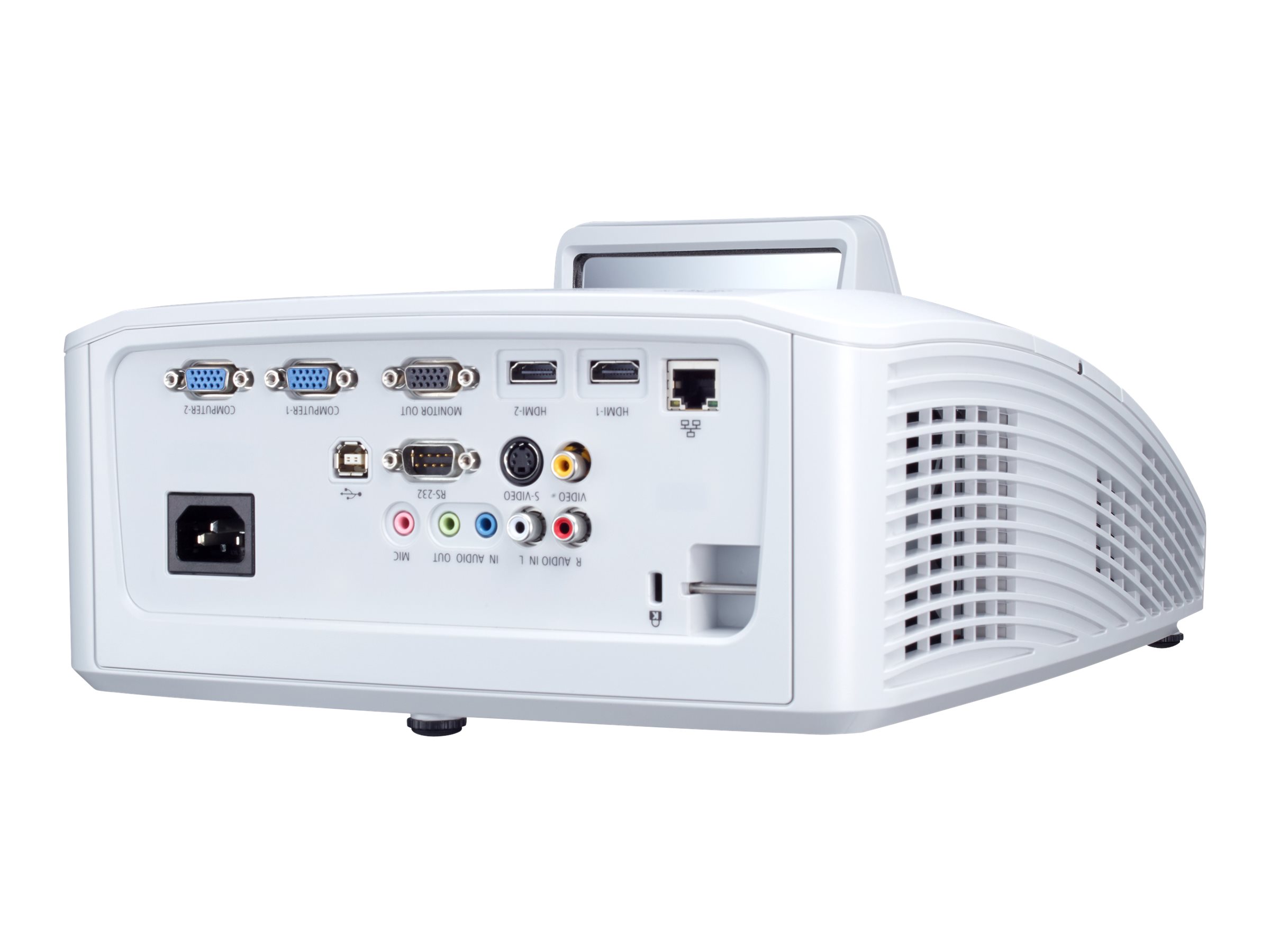 Jusqu'à 8000 heure(s) - mode économiqueCommandes et réglages Correction de la distorsion trapézoïdale Fonctions Profil de couleur sRGB, Deep Color, PJlink, prise en charge du format 16:10, Crestron Connected, Eco Mode, réglage de la couleur sur 6 axes OBJECTIFType Objectif à ultra courte focale Type de mise au point Manuel Ouverture de l'objectif F/2.5 Sens de la correction de la distorsion trapézoïdale Vertical Correction de la distorsion trapézoïdale verticale -40 / +40 ENTRÉE VIDÉOSystème TV NTSC, SECAM, PAL-B/G, PAL-I, NTSC 4.43, PAL-H Signal vidéo analogique RGB, S-Video, vidéo composite, vidéo composante Interfaces vidéo VGA, HDMI, composite video, S-Video Modes vidéo 480p, 720p, 1080i, 1080p, 480i, 576p HAUT-PARLEURSType Interne Mode de sortie audio Stéreo Puissance de sortie/canal 10 Watt EXTENSION/CONNECTIVITÉInterfaces 2 x entrée HDMI - HDMI de 19 broches de type A