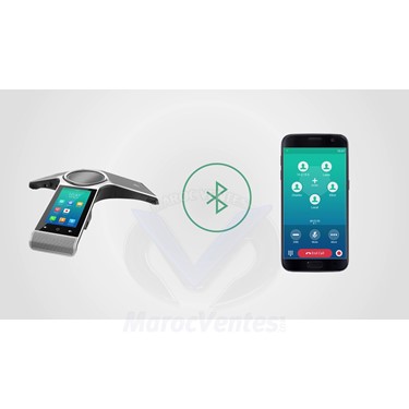 - 2 microphones sans fil CPW90 inclus- Écran couleur tactile 5" 720x1280- Android 5.1- Bluetooth 4.0- WiFi 802.11.b / g / n / ac- Menus interactifs à l'écran- HD Audio (haute définition)- Haut-parleur duplex intégral- Acquisition vocale jusqu'à 6 mètres et 360 °- Annulation des échos- Conférence à 5- Prend en charge l'enregistrement USB- Codec de voix : G722, G722.1C, G726, G729, G723, iLBC, Opus- Technologie anti-bruit Yealink- 1 compte SIP- Attente, muet, DND, enregistrement, hotline- Répétition du dernier numéro, appel en attente, appel d'urgence- Réglage manuel ou automatique de la date- Connecteur jack 3,5 mm pour haut-parleur externe ou amplificateur- Jusqu'à 1000 entrées / contacts- Journal d'appels- Importation d'annuaire- Portes et connexions- 1 RJ45 LAN 10/100- WiFi 2.4 - 5 GHz- Bluetooth 4.0- Port LAN Power over Ethernet 802.3af classe 4- 2 ports de microphone avec fil- 2 ports USB 2.0- 1 prise de sortie audio 3,5 mm- 1 port USB 2.0 Micro-B- 1 emplacement de sécurité- Dimensions : 338 x 338 x 74 mm - Plus d'images (7)