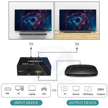Le répartiteur HDMI à 2 ports MT-SP102M est la solution parfaite pour tous ceux qui ont besoin d'envoyer une source de vidéo numérique haute définition à deux écrans HDMI en même temps. Il prend en charge tous les équipements compatibles HDMI, tels que les lecteurs DVD, les décodeurs satellite et tous les écrans HDMI.- Connecte une source HDMI à deux écrans HDMI en même temps