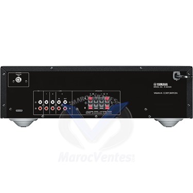 Son Haute Qualité Yamaha, obtenu grâce à de nombreuses années d’expérience et de tradition de l’excellence.Avec 125 ans d’histoire en tant que fabricant d’instruments de musique, Yamaha est également réputé pour ses appareils Hi-Fi. Le R-S202D tire parti de cette riche expérience et expertise technologique. Il repose sur le concept « Natural Sound”, pour une reproduction fidèle de la musique, et a été conçu avec le plus grand soin, notamment pour optimiser le cheminement du signal. Le rendu est de qualité et le son riche, même pour un modèle d’entrée de gamme.Puissance de sortie de 2 x 100 W* et trajet du signal audio optimiséAvec une puissance de 2 x 100 W*, supérieure à sa classe d'amplificateurs, le R-S202D est conçu pour minimiser le trajet du signal à l'aide d'un circuit à la conception optimisée. Le transformateur est positionné près du circuit d’amplification pour réduire la perte de puissance tout en améliorant la capacité d'alimentation en crête et offrir un haut volume de sortie. À savoir, la mise à la terre du signal et l’alimentation sont connectées en un seul point, éliminant les interférences pour obtenir un ratio signal/bruit plus élevé. Le son est ainsi parfaitement clair et ouvert. * 8 ohms, 40 Hz—20 kHz, 0,2% THD* 8 ohms, 40 Hz - 20 kHz, 0.2% THDCompatible Bluetooth® pour streaming musicalLe Yamaha R-S202D propose la fonction Bluetooth® pour diffuser de la musique à partir d’un smartphone ou d’un autre appareil compatible. Utilisez l’écran de votre mobile pour sélectionner vos morceaux et profitez-en avec la puissance et la qualité de votre système de salon.Radio numérique avec tuner DAB/DAB+DAB et sa version améliorée DAB+ sont les systèmes de diffusion audio numérique offrant un vaste choix de stations de radio avec une grande qualité audio. Ils permettent également de trouver les stations automatiquement via une liste, et affichent des informations comme par exemple le nom de la station. 40 stations DAB/DAB+ peuvent être enregistrées.Design d'exceptionLe R-S202D hérite du style à la fois simple et sophistiqué dont Yamaha s’est fait spécialiste. Avec une finition brossée, il s’harmonise avec tout autre équipement Hi-Fi. Les boutons de transport sont également le témoin d’une ergonomie exemplaire.Sélecteur d'enceintes et Borniers à Vis pour Deux SystèmesEquipé d’une double paire de borniers, cet amplificateur peut recevoir deux paires d’enceintes. Le sélecteur d’enceinte permet de passer facilement de l’une à l’autre, afin d’entendre le son sur un seul système (A ou B) ou sur les deux (A+B).Mode Eco et Veille automatiqueLa gestion intelligente de l’alimentation éteint automatiquement l’appareil (passage en veille) quand il n’est pas utilisé depuis un long moment. Le temps d'inactivité peut être réglé à 2, 4, 8, 12 heures ou désactivé. De plus, la consommation en veille n’est que de 0,5 W, pour une économie d’énergie optimisée.Autres Fonctions NotablesTélécommande au design épuréBorniers à vis pour enceintes et Sélecteur d'enceintes et borniers déparés pour deux systèmesCaractéristiques TechniquesR-S202DRécepteur / Amplificateur IntégréSection réseau Bluetooth Oui (SBC / AAC)Puissance de sortie RMS minimale (8 ohms, 40Hz~20kHz) 100 W + 100 W (0,2 % THD)CaractéristiquesPuissance maximale (4 ohms, 1 kHz, 0,7 % THD, pour l'Europe) 115 W + 115 WHaute puissance dynamique/canal (8/6/4/2 ohms) 125 W / 150 W / 165 W / 180 WRéponse en fréquence 20Hz-20kHz (0+/-0.5db), 10Hz-100kHz (0+/-3.0db)Distorsion harmonique totale (8 ohms, 20 Hz-20 kHz) 0,025 % (Phono (MM) vers REC Out), 0,2 % (CD vers SP Out)Rapport signal sur bruit (CD) 100 dB (S : 500 mV)Sensibilité d'entrée (CD) 500 mV / 47 k-ohmsSensibilité au silence FM 50dB (IHF, 1 kHz, 100% Mod., Mono) 3 μV (20,8 dBf)Rapport signal/bruit FM (mono/stéréo) 72 dB / 70 dBConsommation électrique en veille 0,5 WDimensions (L x H x P) 435 x 141 x 322 mm ; 17-1/8" x 5-1/2" x 12-5/8"Poids 6,7 kg ; 14,8 livres.