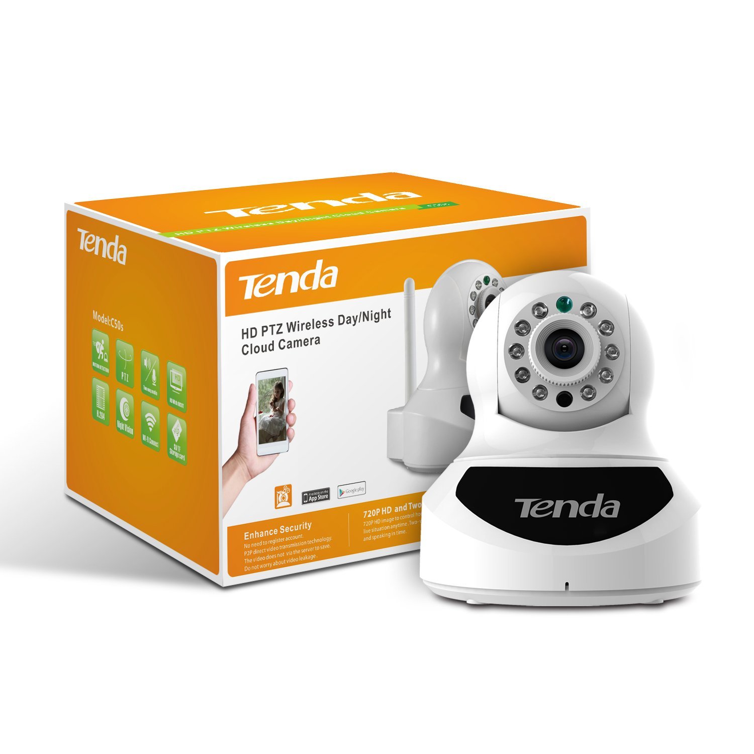 Informations générales sur le produitMarque : TENDANom du produit : Tenda C50s Caméra de surveillance réseau PIZ couleCatégorie : CAMÉRA IPGénéralType de périphérique : Caméra de surveillance réseauTechnologie de connectivité : Filaire, sans filLargeur : 11.8 cmProfondeur : 10.7 cmHauteur : 10.6 cmPrise en charge audio : Oui haut-parleur intégré, fonctionnalité audio bidirectionnelle, microphone intégréCaméraType : Couleur - Jour et nuit - panoramique - inclinaison - zoomRésolution vidéo numérique max. 1280 x 720Caractéristiques : Alertes par e-mail, prise en charge ONVIF, Technologie de détection de mouvement, filtre de coupure d'infrarouge, Wi-Fi Protected Setup (WPS), bouton de réinitialisationFormat de vidéo numérique : MJPEG, 3GPP, H.264Voyants infrarouge : 10Distance d'infrarouge : 10 mModes vidéo : 720pCapteur d'imagesType : 1,3 MP CMOSStructure de l'objectifType : Focale fixeDistance focale : 3.6 mmIris de l'objectif : F-2.0Extension-connectivitéCartes mémoire prises en charge : Carte microSDPorts : LAN - RJ-45InterfacesInterface réseau : Ethernet 10Base-T-100Base-TX, IEEE 802.11b, IEEE 802.11g, IEEE 802.11nProtocoles réseau : DDNS, DHCP, FTP, HTTP, NTP, SMTP, TCP-IP, UDP-IP, ARP, ICMP, RTSP, RTP,UPnPPanoramiquePlage (degré) : 355InclinaisonPlage (degré) : 120Logiciels - Configuration requiseSystème d'exploitation requis : Apple MacOS, Microsoft Windows Vista - XP - 7 - 8Configuration requise détaillée : Windows XP-Vista-7-8 - 2 GHz - RAM 256 MoMacOS - 2 GHz - RAM 256 MoLogiciel(s) inclus : Pilotes de périphérique & utilitairesAlimentationAlimentation requise : CC 9 VPériphérique d'alimentation : Adaptateur secteur - externeDiversAccessoires inclus : Support de fixationCâbles inclus : 1 x câble réseau - externeNormes de conformité : Plug and Play, FCC, RoHSCaractéristiques d’environnementHumidité relative (en fonctionnement) : 10 - 80%Température maximale de fonctionnement : 50 °CTempérature minimale de fonctionnement : 10 °C - Plus d'images (7)
