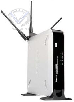 Le WAP4400N est un point d'accès équipé d'un port Ethernet gigabit, compatible avec les normes 802.11 b et g. Muni de trois antennes orientables, il est capable de gérer la priorité des services (QoS) afin par exemple qu'une application de peer-to-peer n'empiète pas sur la bande passante nécessaire à un appel via la voix sur IP dans de bonnes conditions. Par ailleurs, il est compatible PoE (Power over Ethernet). | |