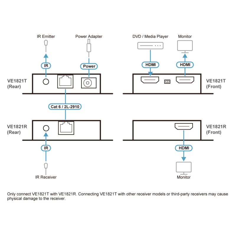 - 1x VE1821R 4K HDMI Cat 6 Extender (récepteur)
