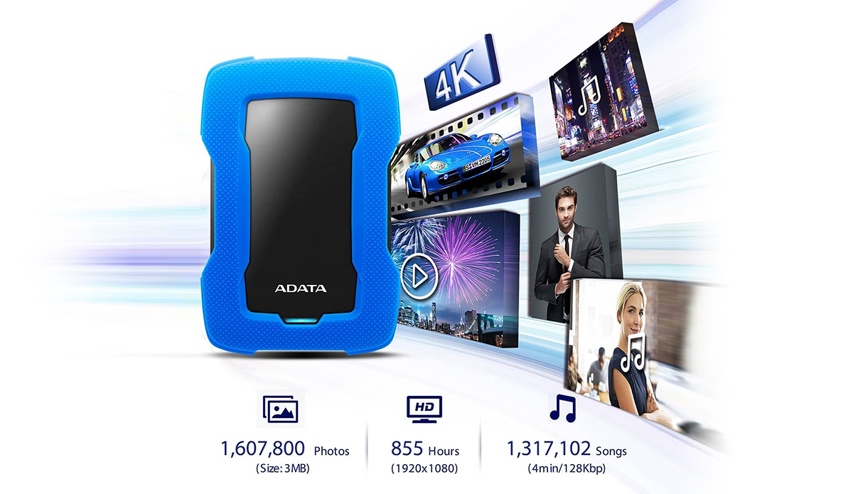 Disque Dur Externe HD330-2TB USB 3.1-Anti choc SLIM BLUE