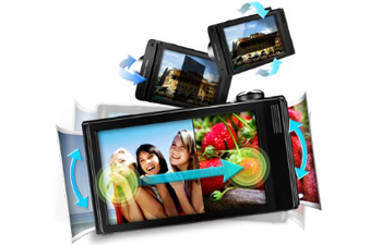 L’interface utilisateur Smart Gesture transforme la gestion de photos en une expérience palpitante. En effet, son capteur d’accélération intégré transforme vos gestes en commandes. Inclinez-le simplement d’un côté ou de l’autre pour parcourir vos photos, et ce sans devoir toucher le moindre bouton. Vous n’aimez pas la manière dont une photo a été prise? Tracez simplement un X sur l’écran ou faites tourner l’appareil et - pouf! - elle est supprimée. Changez facilement de mode et créez des diaporamas en toute simplicité et sans appuyer sur aucun bouton.