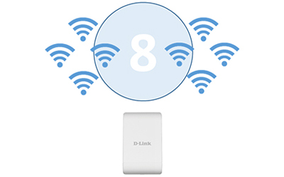Avec une conception radio haute puissance et des antennes directionnelles intégrées à gain élevé, le DAP-3410 prend en charge un débit allant jusqu'à 300 Mbit/s pour la bande 5 Ghz. |
