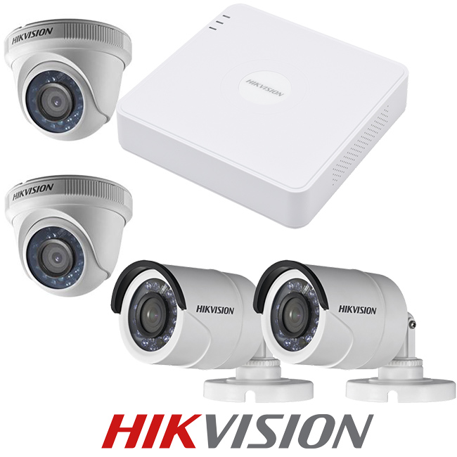 Hikvision HIK PACK Analogique 4 Caméra et DVR - Kit 1.3 Mégapixels système de 4 caméras 2 extérieurs/intérieurs et 2 intérieurs avec DVR