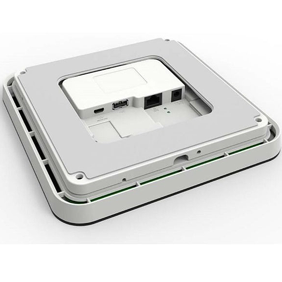 Simple d'utilisation, ce système de réservation de salle fonctionne par code couleur(LED) pour visualiser immédiatement l'état de la salle : vert = libre, rouge = occupée, orange = en attente de confirmation. La tablette est également équipée d'un détecteur de mouvement qui lui permet de sortir de veille dès que vous passez la main au-dessus.