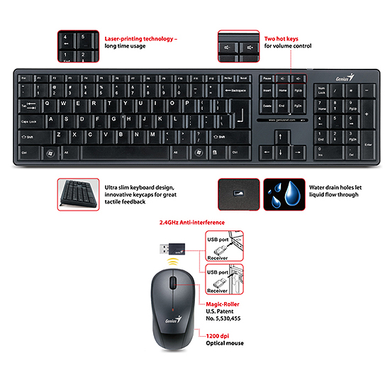 Genius SLIMSTAR 8000 - SlimStar 8000 : ensemble clavier + souris sans-fil