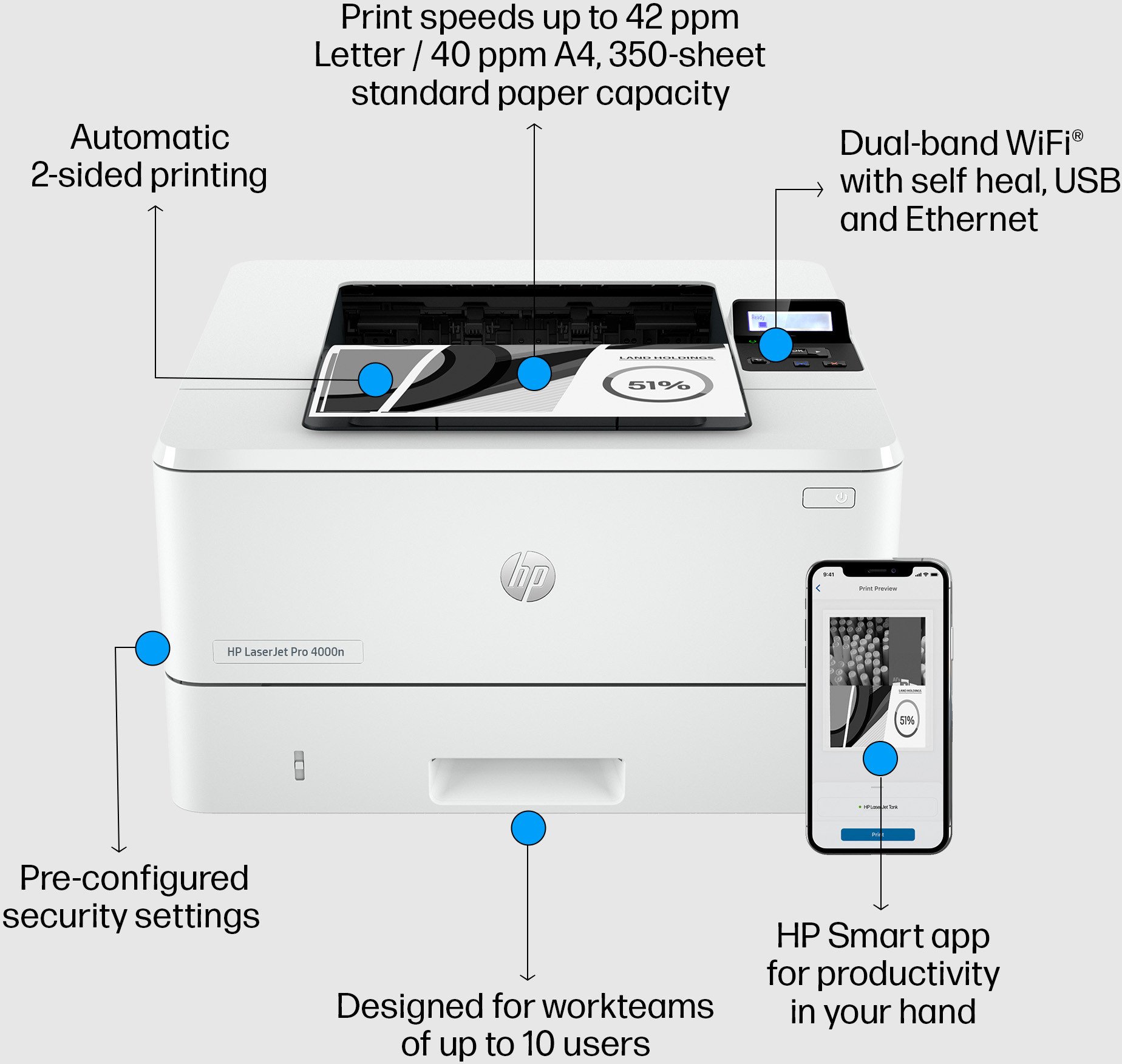 Imprimante Monochrome HP LaserJet Pro 4003dw