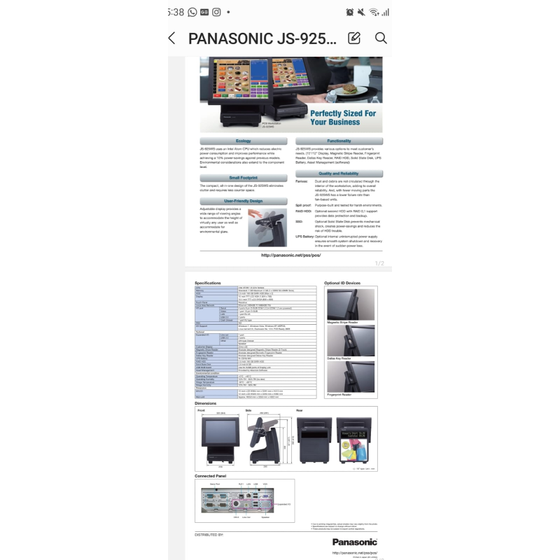 Panasonic JS925 - CAISSE TACTILE PANASONIC JS925