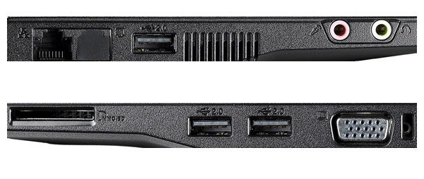 1x RJ45 Femelle, 3x USB 2.0, 1x VGA (D-sub 15 Femelle), 1x Casque (Jack 3.5mm Femelle), 1x Micro (Jack 3.5mm Femelle) |