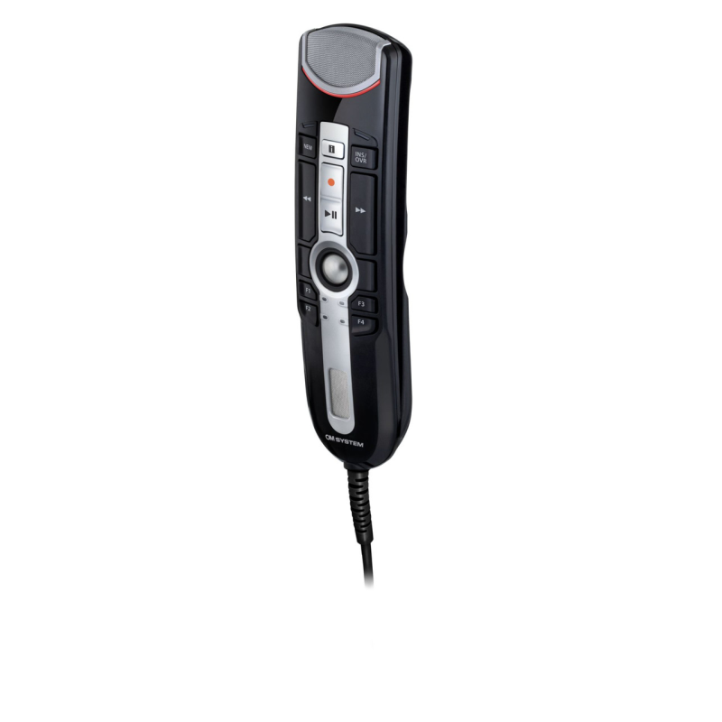 Le RecMic RM-4110N offre un contrôle de l’enregistrement par interrupteur à glissière pour une utilisation facile. Doté d’une souris avec une boule de commande, d’un haut-parleur intégré, d’un support mains libres et de paramètres personnalisables, il améliore à la fois l’efficacité et la précision de la reconnaissance vocale dans la documentation médicale et la dictée légale.