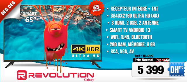 Revolution IK-65S - LED TV 65″ SMART Ultra HD 4K Récepteur Intégré +TNT