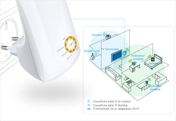 Le TL-WA750RE est conçu pour étendre la couverture réseau de façon pratique et améliorer la force d'un réseau sans fil existant afin d'éliminer les "zones d'ombre", il aide l'utilisateur à préserver un réseau sans fil existant et à améliorer largement sa portée. Avec un débit 150Mbps à la norme 802.11n, il est idéal pour des vidéos HD fluides, la diffusion de musique et les jeux en réseaux.