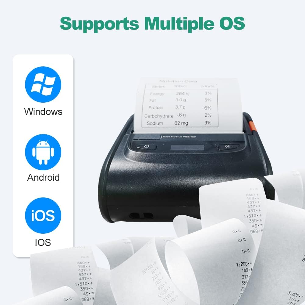 UROVO K329 58mm Mini imprimante thermique directe portable sans fil Imprimante de codes à barres d'étiquettes de reçus avec Bluetooth WIFI. UROVO K329 Imprimante portable Bluetooth, imprimante thermique de reçus, étiquettes 3 x 5, imprimante mobile de poche sans fil compatible avec Windows iOS Android, pour listes de travail, étiquettes d'expédition.