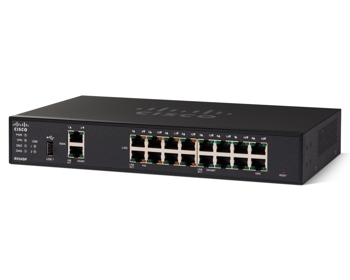 Cisco RV345P-K9-G5 - Routeur VPN avec 16 ports Gigabit Ethernet dont 8 ports POE et 2 port USB