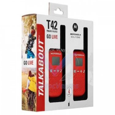 Talkies-walkies PMR446 idéal pour les loisirsExtrêmement simple d'utilisation et offrant des conversations entièrement gratuites, le talkie-walkie T42 convient à une application occasionnelle, pour vos loisirs en plein air, en famille et entre amis.Communiquez avec vos interlocuteurs avec jusqu'à 4 km de distance, sur 16 canaux différents. L'appairage est d'une simplicité enfantine, vous pouvez alors profiter d'appels de groupe ainsi que de la fonction SCAN permettant de chercher automatiquement les canaux disponibles à proximité et la fonction monitor, offrant alors une utilisation semblable aux babyphones. Des stickers de personnalisation sont fournis afin de styliser vos talkies-walkies à votre convenance.Profitez de votre Motorola T42 durant plus de 18 heures grâce à ses trois piles AAA (non fournies). Ce nouveau talkie-walkie va devenir votre meilleur ami et celui de votre entourage, il ne présente aucun danger pour les plus jeunes et fait retomber en enfance les plus grands.Caractéristiques Techniques :