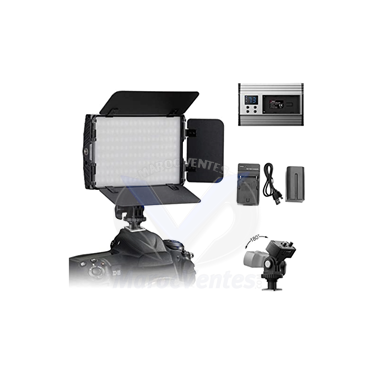 Les 144 LED Éclairage LED bicolore de 15 W sur l'appareil photo de Tolifo comporte une sortie variable de 3200 à 5600K, une gradation de 10 à 100%, des portes intégrées et un panneau de diffusion. Alimentez ce panneau LED bicolore à l'aide de la batterie Sony de type série L fournie ou d'un adaptateur secteur disponible séparément.