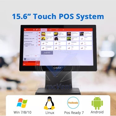 Terminal Point de Vente GSUN Intel Core I5-3th Ecran Tactile 15,6" 128 Go SSD 8Go Win10 avec Lecteur Dallas