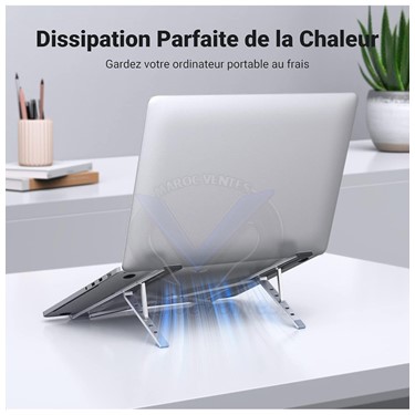 Optimisez votre espace de travail avec le Support Ordinateur Portable Ugreen en Aluminium. Avec ses 5 niveaux de hauteur réglables, il offre une ergonomie exceptionnelle pour votre ordinateur de 8 à 17,3 pouces, favorisant une position de frappe confortable et une meilleure visioconférence. Le matériau en aluminium et les tampons en silicone 1 résistent aux rayures, garantissant la stabilité de votre appareil. De plus, sa conception creuse assure un refroidissement efficace pour une performance optimale. Compact et léger, il se range facilement dans le sac fourni, idéal pour une mobilité sans compromis. Commandez le vôtre aujourd'hui !